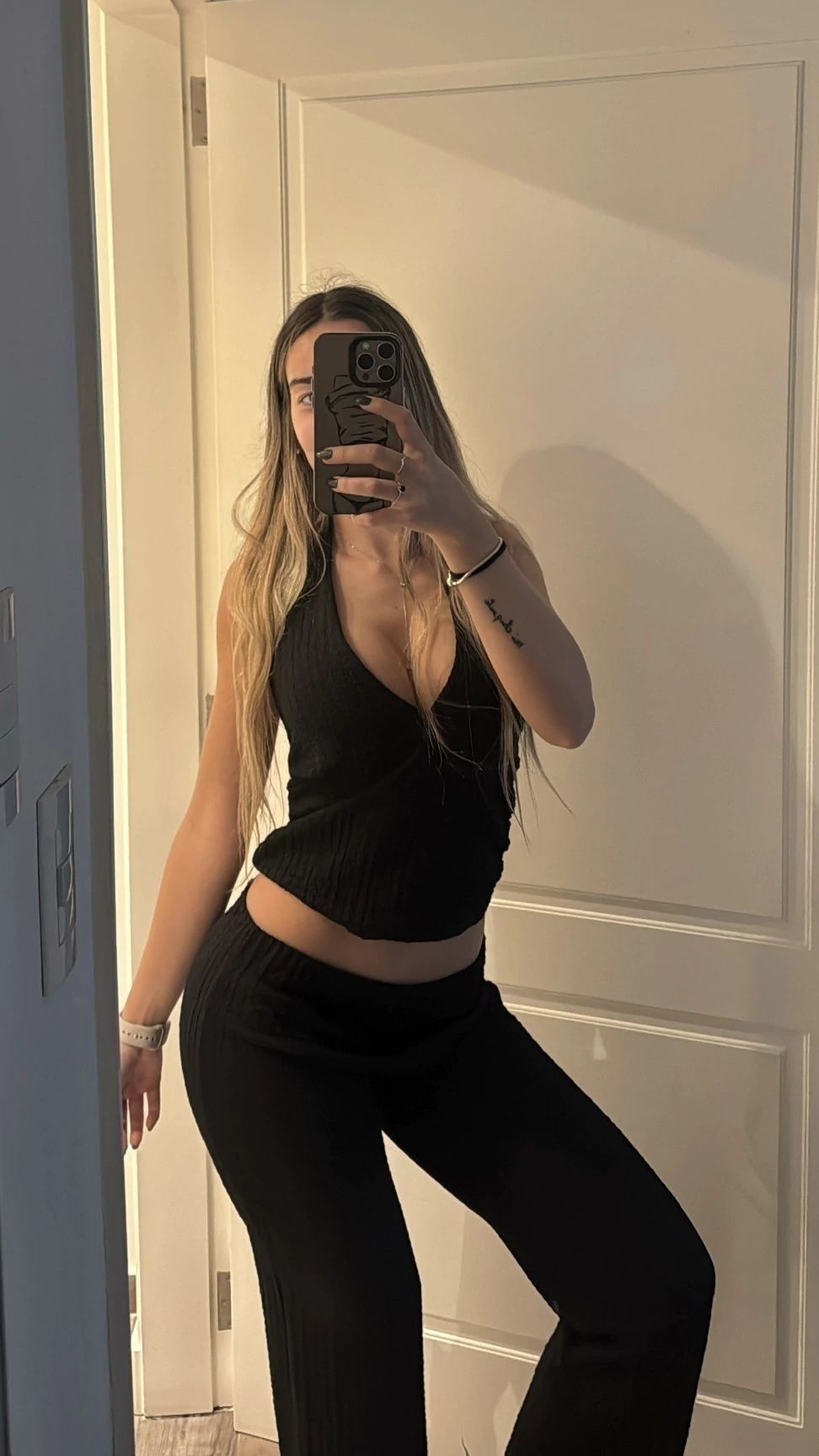El Set Stella es un must-have para tu guardarropa: compuesto por un top con escote en V y espalda descubierta, acompañado de un pantalón palazzo de tiro bajo. Confeccionado en tela liviana con textura acanalada, es cómodo, versátil y perfecto para llevar tanto de día como de noche. Su diseño minimalista realza la silueta y lo convierte en un básico atemporal que nunca falla.
