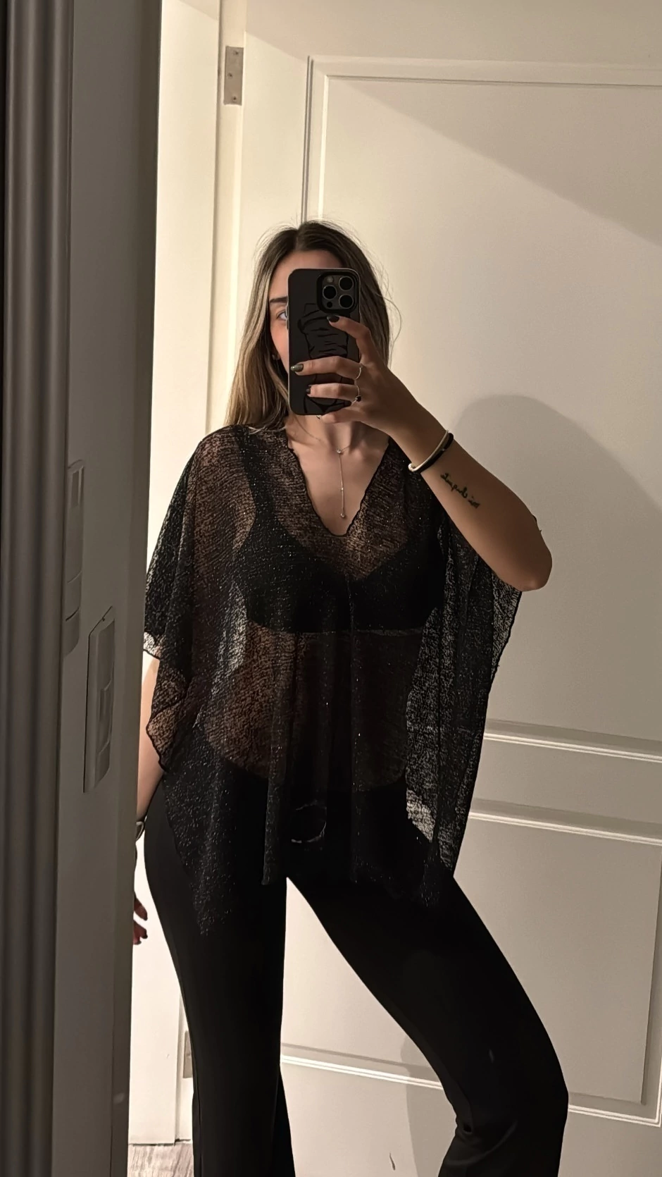 Liviano, con destellos brillantes y caída suelta, perfecto para elevar cualquier look nocturno o usar sobre tu bikini. Su tela con brillos aporta el toque justo de glamour sin perder comodidad.