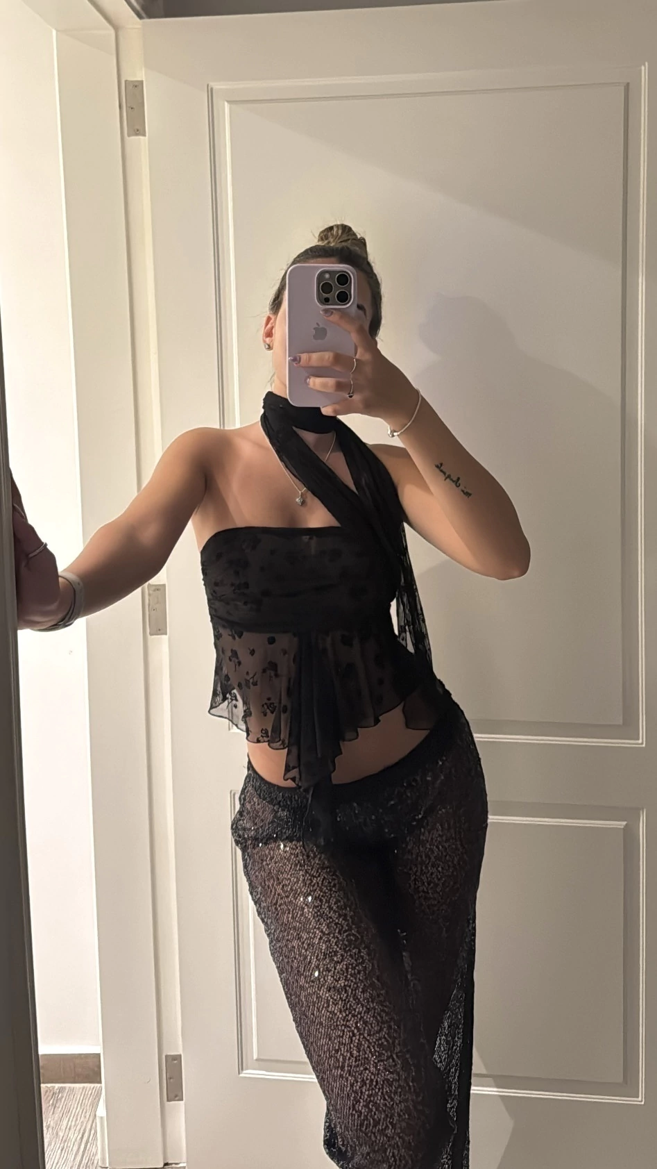 Acompañado de una bufanda, fina y versátil, ideal para usar cruzada o suelta según tu estilo.